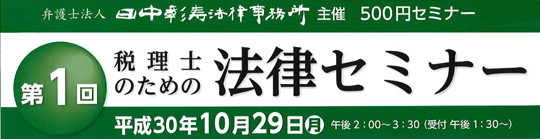 - セミナーに対するご質問などに関しましては、当事務所までお電話にてお問合せください。